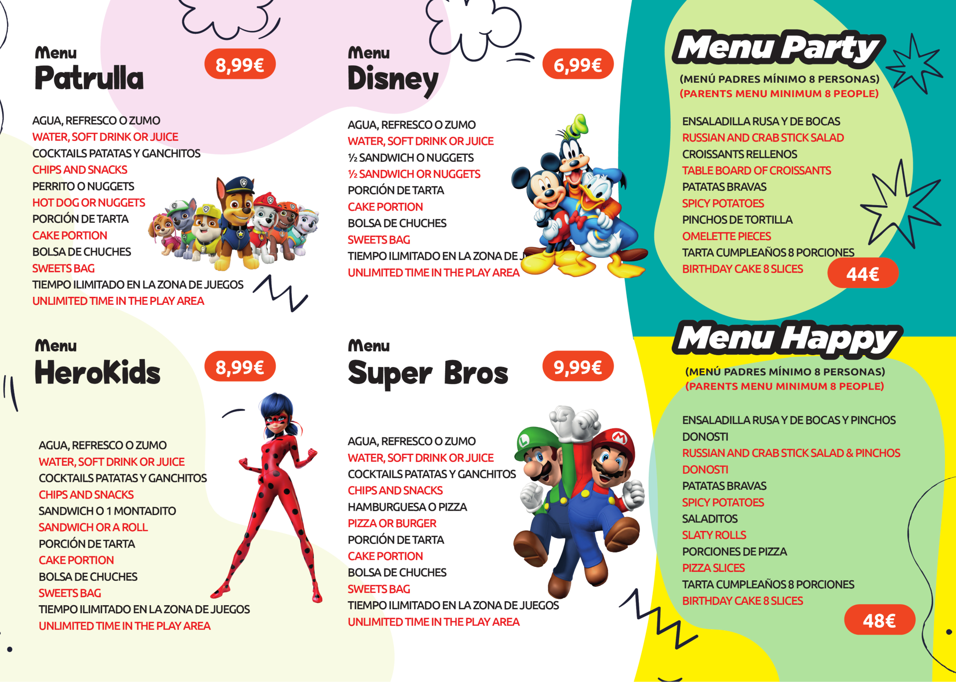 Menús infantiles